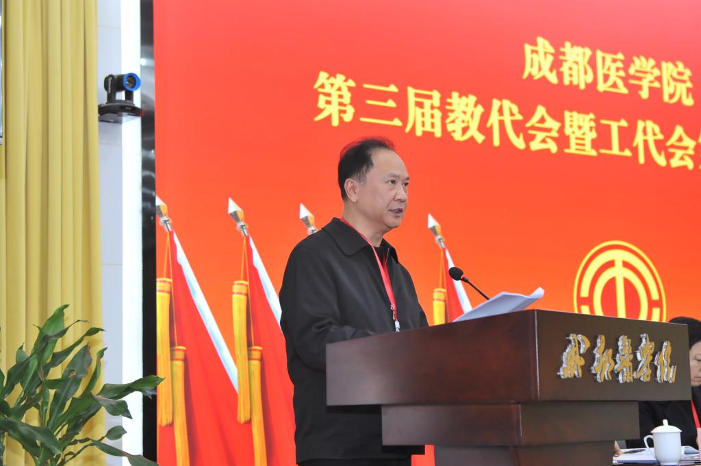 校党委副书记、工会主席郝明作题为《团结奋进,众志成城,为推进医科大学建设目标贡献工会力量》的2023年工会工作报告。报告指出,学校工会2023年工作平稳向上,能够认真贯彻落实全总、省总以及学校党委的决策部署,扎实开展职工教育,大力培育工匠精神、劳动精神和劳模精神,努力营造良好校园氛围,创新性做好职工福利保障工作,积极解决职工后顾之忧,在民主监督、参政议政、聚力凝心等方面取得了新成绩。报告强调,2024年校工会将认真贯彻落实四川省总工会以及学校党委的决策部署,扎实开展职工教育,大力培育工匠精神、劳动精神和劳模精神,努力营造良好校园氛围,创新性做好职工福利保障工作,积极解决职工后顾之忧,在民主监督、参政议政、聚力凝心等方面取得了新成绩,为医科大学建设贡献工会力量。
