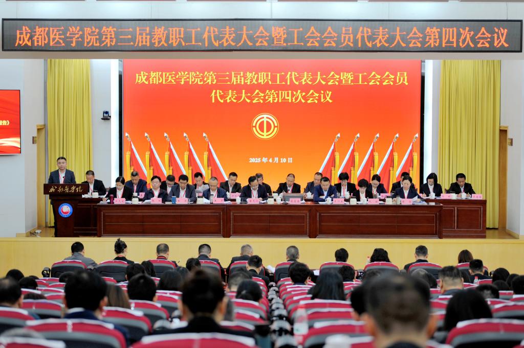 4月10日,成都医学院第三届教职工代表大会暨工会会员代表大会第四次会议在新都校区召开。学校领导班子成员、正式代表、列席代表等200余人齐聚一堂,总结过去、凝聚共识、展望未来,共商学校高质量跨越式发展大计。校党委书记来建出席会议并讲话,校党委副书记、校长潘克俭作学校2024年工作报告,校党委副书记、校工会主席蒋通荣主持大会。