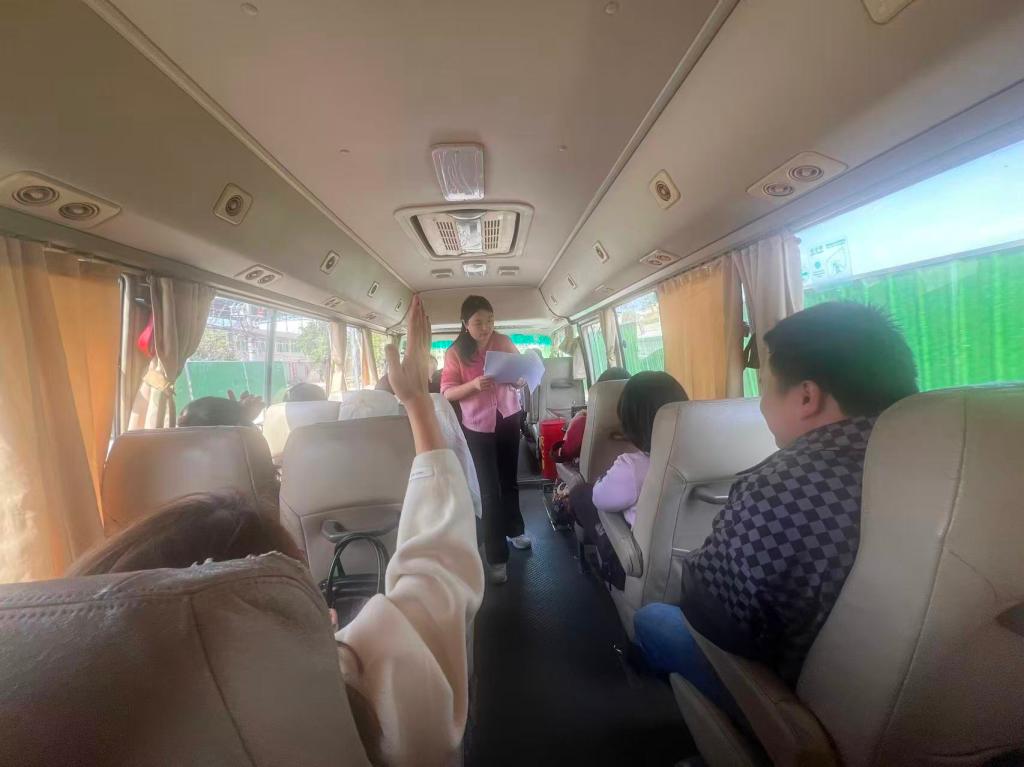 返程途中,工会精心策划“校情应知应会”知识有奖抢答活动,将校情知识学习融入趣味互动中。现场氛围轻松热烈,老师们踊跃举手、积极抢答,在趣味比拼中巩固校情知识,展现出昂扬向上的精神风貌,也为本次主题活动划上了圆满且热烈的句号。